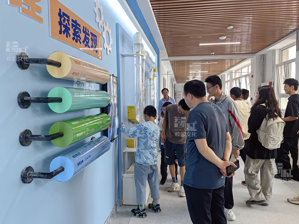 在选定校园走廊文化墙主题时,我们始终将学生的认知发展规律作为核心设计依据,构建"学段适配+兴趣驱动+能力培养"的三维主题体系。针对小学低学龄阶段(1-2年级),开发"趣味认知型"主题,比如"汉字演变乐园"(通过象形字卡通化设计展示汉字起源)、"自然科学启蒙墙"(用AR技术让动植物图片"活"起来);小学高学龄阶段(3-6年级)侧重于"实践探索型"主题,例如"数学思维迷宫"(设置趣味数学谜题闯关)、"小小发明家和他们的故事"(展示儿童能理解的发明原理);初中阶段转向"思辨探究型"主题,例如"世界文明对话长廊"(对比展示不同文明的科技、艺术成就)、"未来职业体验站"(介绍各职业所需核心素养);高中阶段则重点突出"价值引领型"主题,例如"中国精神图谱"(解析井冈山精神、航天精神等时代内涵)、"生涯规划地图"(展示不同专业领域的发展路径)。每个主题均配套设计互动参与模块,例如"我的创意贴画区"(提供磁贴让学生创作)、"问题树留言板"(收集学生对主题内容的疑问与思考)、"学习成果展示窗"(定期更新学生相关作品),真正实现从"被动观看"到"主动参与"的转变。