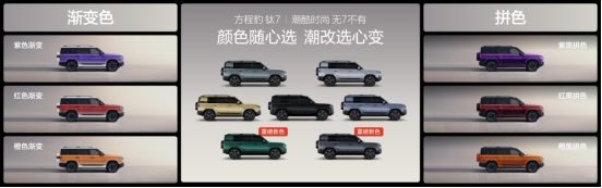 为了让广大用户选得尽兴,钛7直接一步到位,带来了7款外观颜色、3款内饰颜色,同步在官方商城上架了6款潮改方案,可满足不同用户的审美偏好。