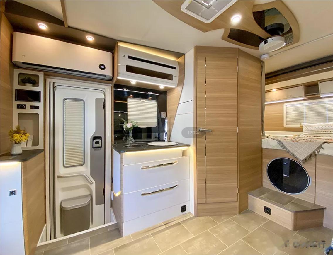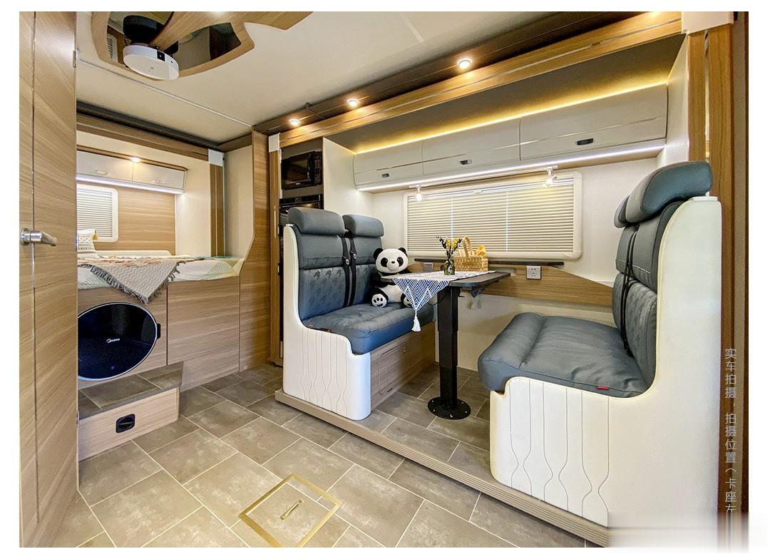 大驰蛮牛双拓版,一款不到40万的C型房车!动力充沛耗油低,6座4卧,设施还挺齐全。搭载2.8T康明斯柴油发动机6AT变速箱,驾驶平顺、舒适。户外的双孔灶台满足两人同时做饭的需求,车内还有电磁炉,微波炉,冰箱等设施,丰富厨房功能。额头双人额头床,加尾部双人横床,会客区4人卡座也能拼床,会客区和尾部的拓展舱全部外拓出去,室内空间宽敞明亮。卫生间采用折叠式台盆,旋转马桶,梳妆镜后还隐藏这储物柜台,洗衣机被安置在尾床下边,整个空间布局非常合理。是非常适合年轻人出门旅行的一款房车。