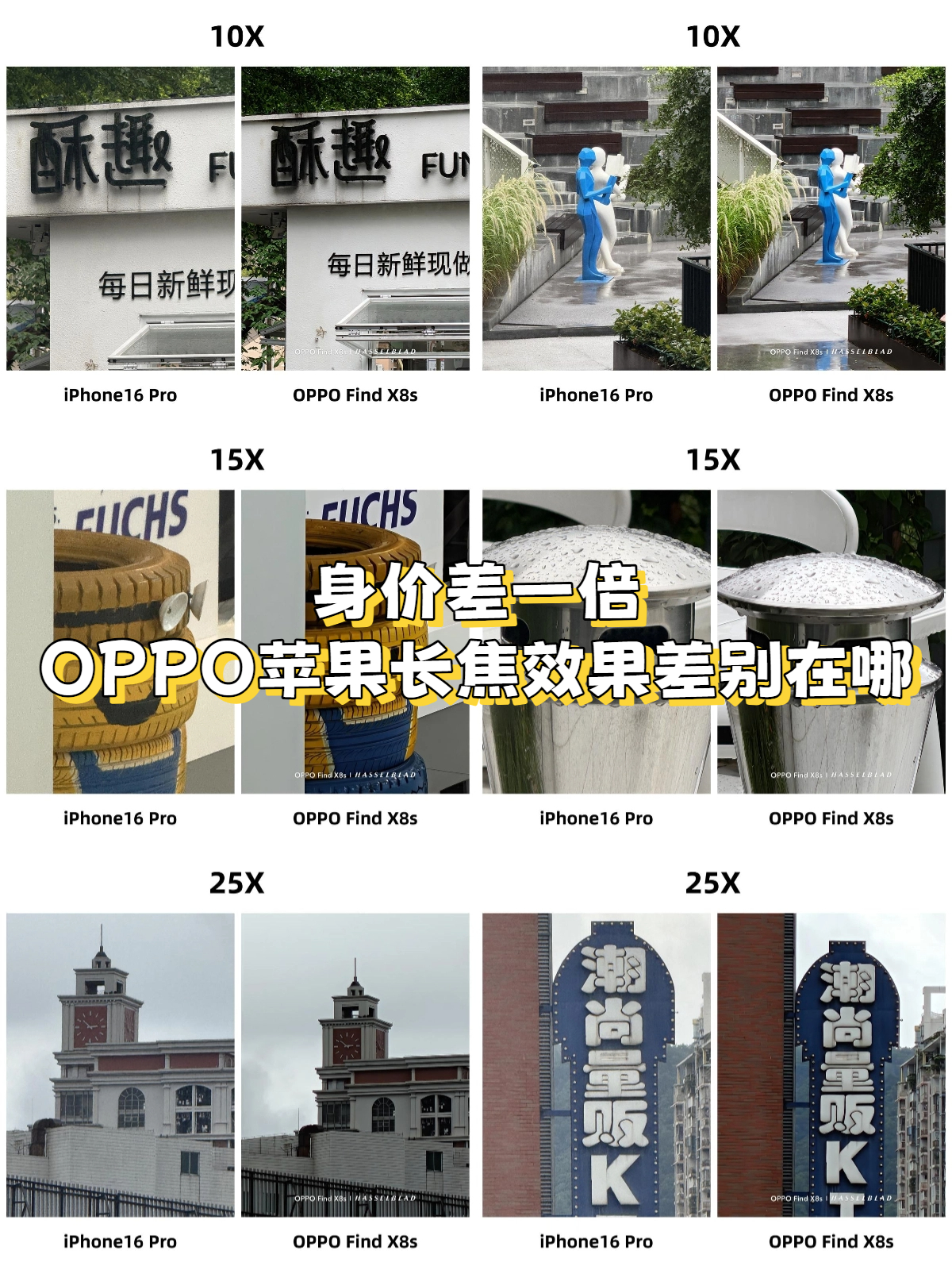 有点疑惑啊,iPhone拍视频这么强,按理说拍照不至于这么弱吧?到底是哪个环节出问题了?-就拿这几组样张来说吧,iPhone 16 Pro对比身价差一倍的Find X8s,长焦拍出来的画面一眼的不同,没对比的话可能都没注意。-10x画面下其实都可以,看着就是色彩的区别;15x下也能接受,就是画面噪点区别有点明显,Find X8s明显控制更ok;但到了25x,Find X8s的表现要强很多了,而且也不会说通过锐化、涂抹换来的优势,光学品质看着是接近的。-同尺寸机身下,拍照Find X8s的潜望长焦优势很大,正面颜值、边框、续航、充电也有优势,系统的话ColorOS15流畅度在鲁大师国产手机系统流畅榜排名Top1,是能媲美iOS的国产系统,体验还是很越级的#iPhone16Pro #OPPOFindX8s #手机摄影 #长焦对比 #国产旗舰 #ColorOS15
