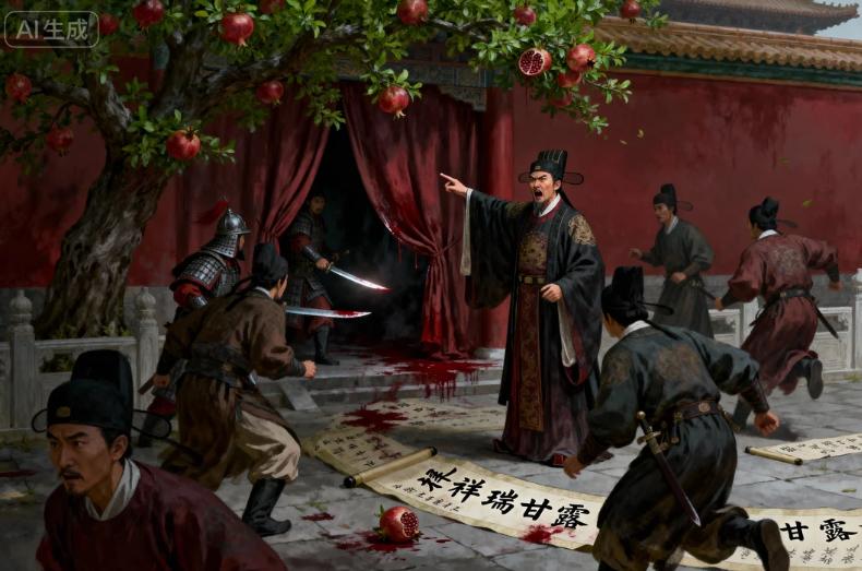 药藏锋,露染血。大和九年(835年)的大明宫紫宸殿偏阁,烛火摇曳如鬼火,五十二岁的郑注捏着一方描金药盏,指尖的药粉簌簌落在盏中。他身着绯色宰相袍,领口却沾着不易察觉的墨痕——那是方才与李训草拟“甘露计”时,不慎蹭上的奏折残墨。药盏里的“安神汤”冒着热气,汤药表面的油花却映出殿外一闪而过的刀光,殿角宫人垂首而立,裙裾下的地面,已洇开一丝暗红的血迹,似在预示这场以“治病”为名的权术游戏,终将以血色收场。