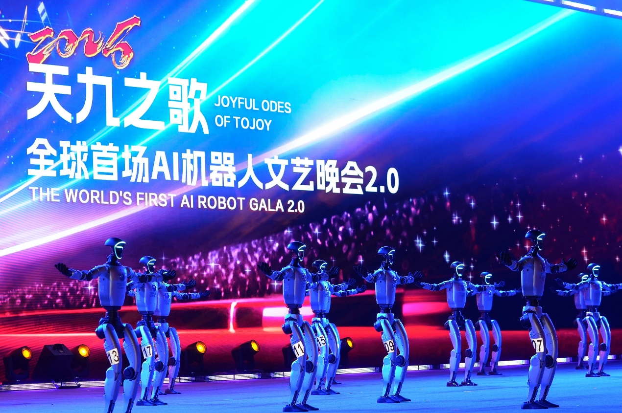 作为整场嘉年华的压轴大戏,“AI机器人文艺晚会2.0”不仅是科技的集中展示,更成为“人工智能+文化”融合的深度实践,由行业头部多品牌人形机器人及机器狗联袂完成。随着机器人表演从1.0阶段的技术验证,进阶到此番2.0版本的协同升级,人工智能机器人任务完成能力,也从“工具执行”迈向“情感表达”与“系统协作”的新阶段。更为重要的是,“独角兽嘉年华”为企业跨行业理解AI应用场景、充分融入智能生态提供了直观的入口。