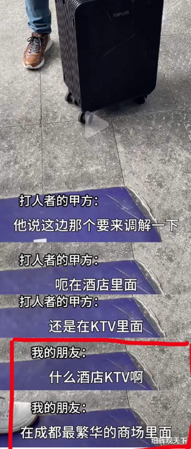其实是在成都一个商场里面打的,而且是当着围观群众的面,围观群众纷纷侧目。