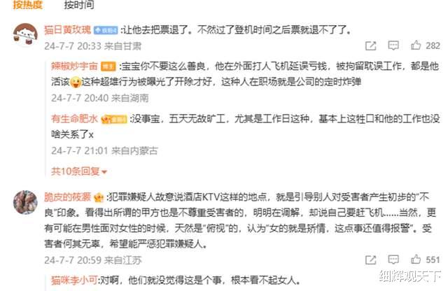 当然了,这件事情还有一些细节也非常值得大家琢磨,该女生挨打之后,第二天,打人者就被喊到了派出所进行一个调解,打人者口口声声说自己是在酒店KTV打的女生,按照这样的口吻来进行调解,并且一再强调自己要赶飞机,自己的时间很紧。