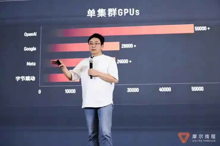 幸运的是,2023年掀起了大模型风暴,摩尔线程迅速转型跟进,搞出了国产千卡集群,又在2024年,和中国移动搞出来万卡集群。