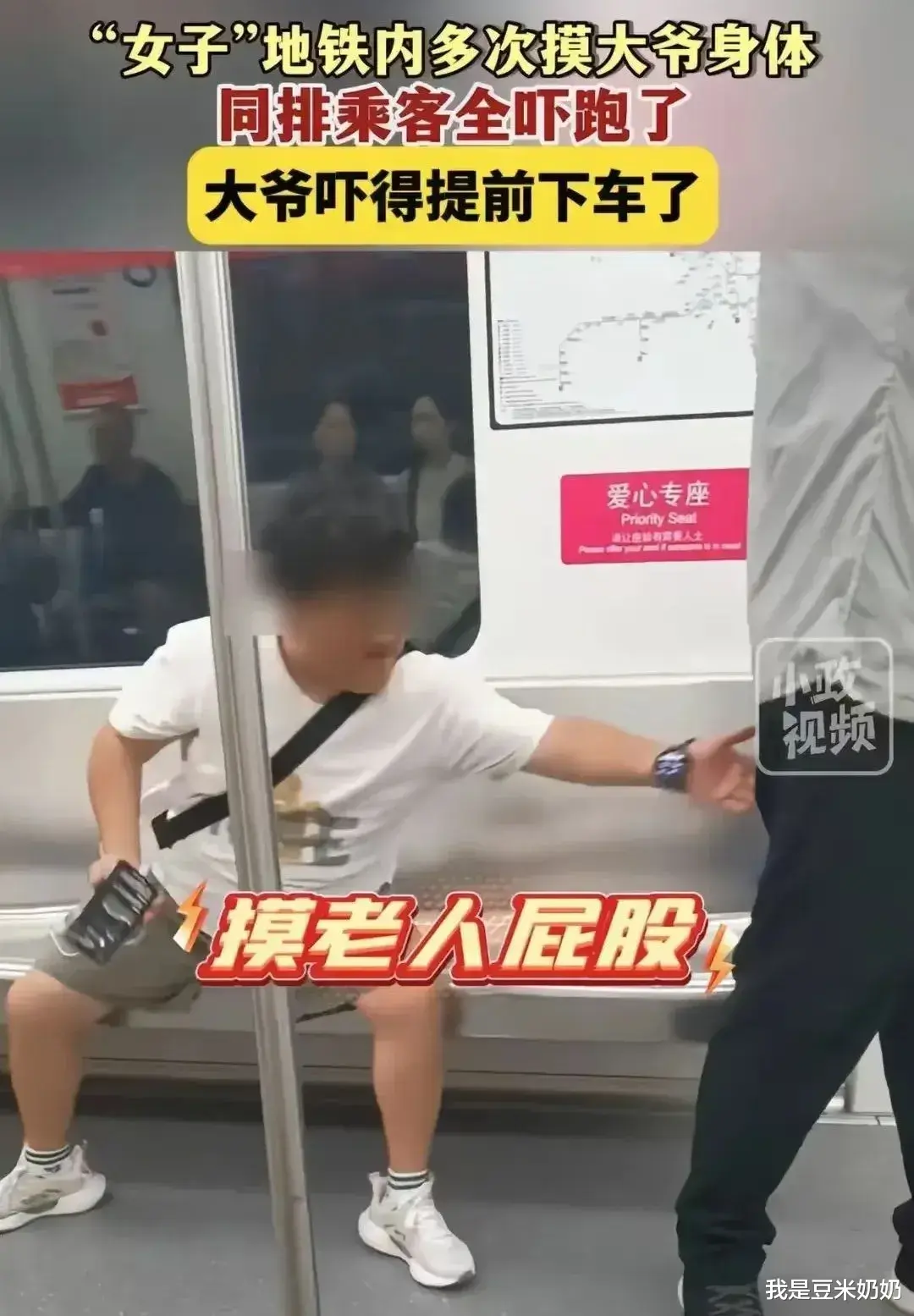 有网友透露,这名女子并非独自一人,她与其他同小区的人一同乘坐地铁,并且在大爷下车后,仍然在地铁上对其他男子进行类似的行为。