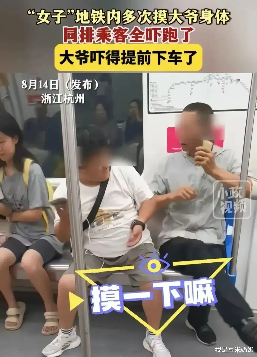 8月14日,杭州地铁6号线上,一位大爷在车厢内竟然被一名女子的偷袭隐私部位。