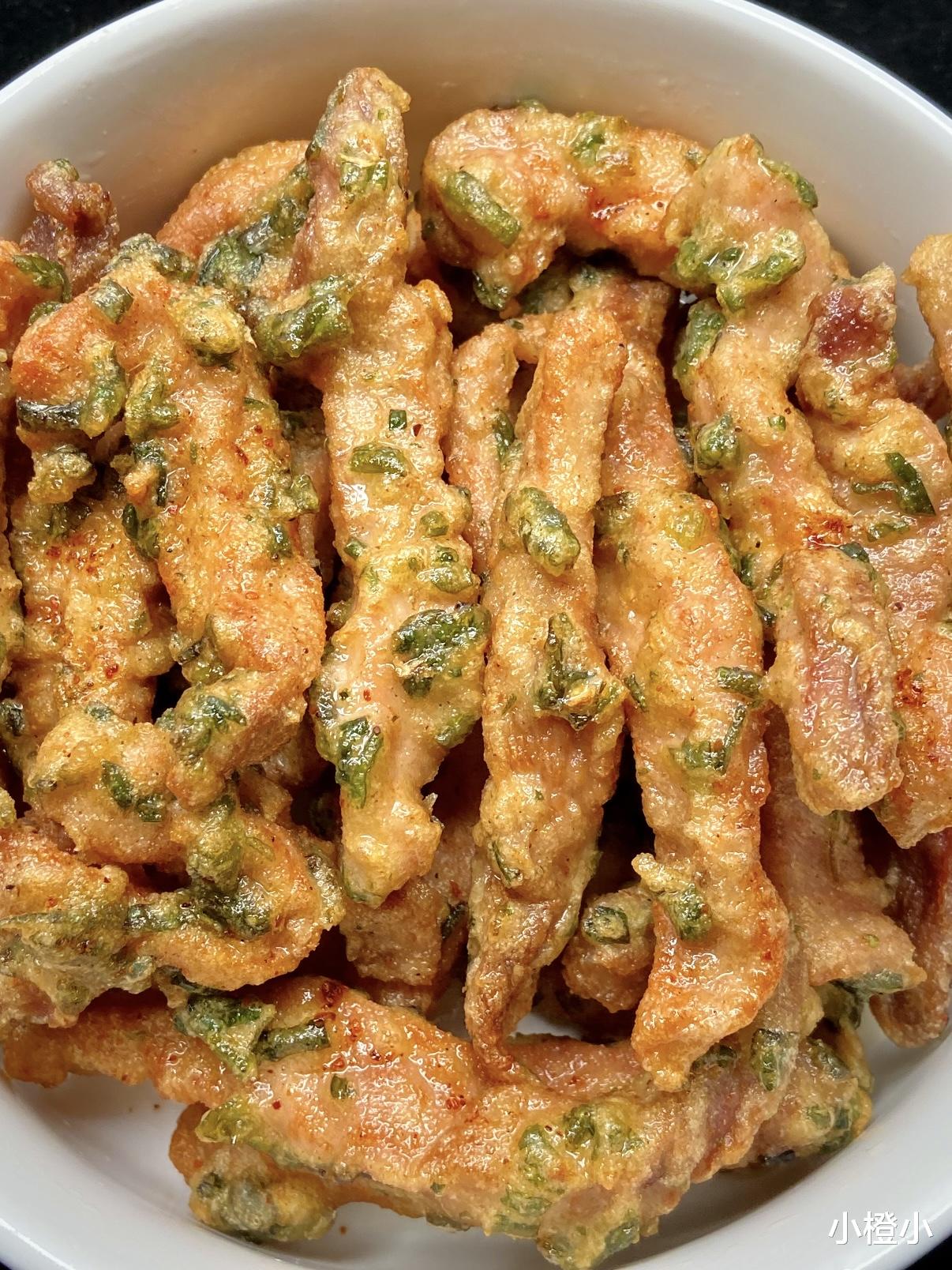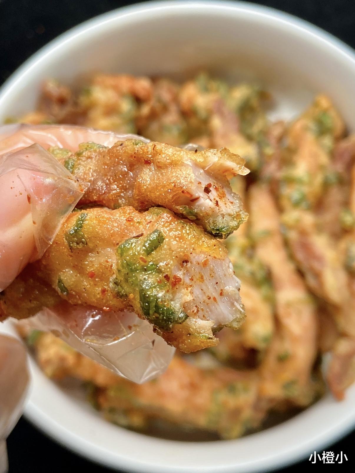 2. 芝士爆浆版:肉条包小块芝士再裹粉,拉丝“瀑布”get。