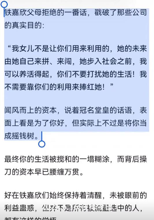 他们向铁嘉欣父母描绘着,将她包装成童星后的美好蓝图,声称“铁家”往后会吃喝不愁,有花不完的钱。