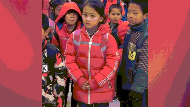 当时天气有些冷,学生们个个穿着厚厚的棉服,站在队伍前面搓着小手,模样十分可爱。