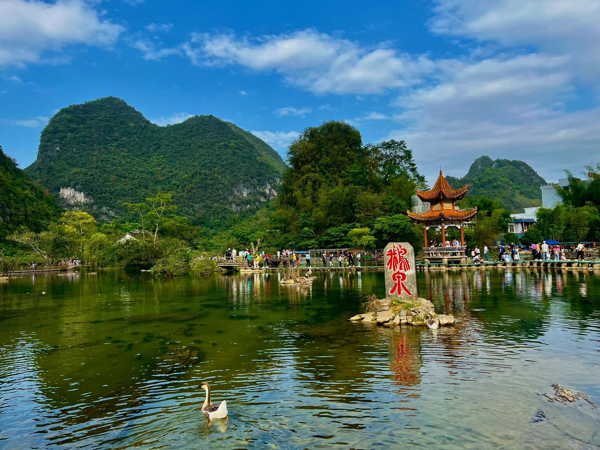 Day1️⃣: 上海 ✈️ 南宁吴圩机场 — 租车 — 自驾3h到靖西长丰国际大酒店check in — 自驾15min到鹅泉 — 游览鹅泉1h — 自驾15min到锦绣古镇 — 游览锦绣古镇1h — 自驾10min回酒店休息