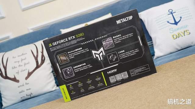显卡选择了影驰 GeForce RTX 5080 金属大师 黑金版 OC,显卡采用了金属风十足的外包装,黑色色的机甲图案质感出色,看起来扎实沉稳,又充满了科技感。