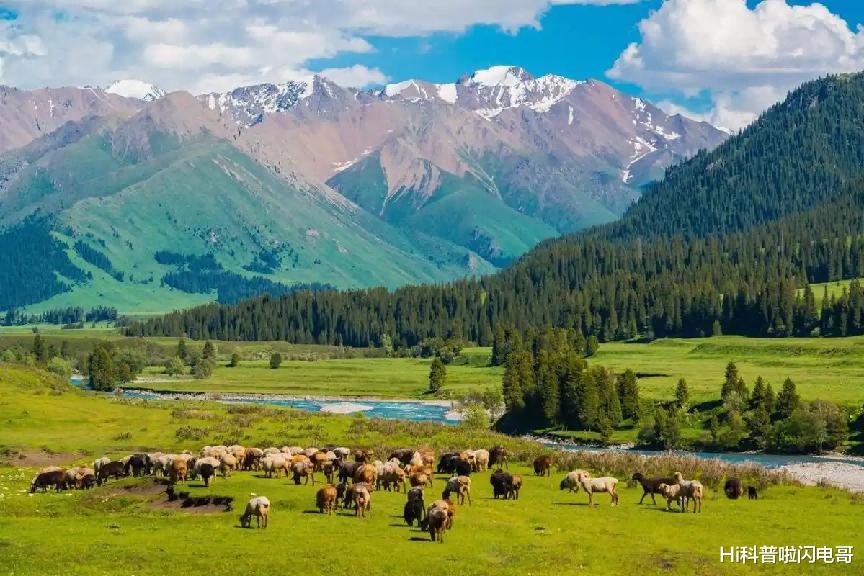 靠着这河水,伊犁河谷养活了 1500 万亩耕地、5400 万亩草原和 2700 万亩森林,光小麦年产量就占新疆的 20%,牛羊存栏量更是占全疆的三分之一。