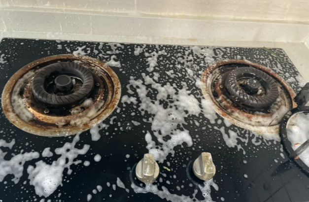 油垢厚的地方可以分层清理,膏体多涂几次更有效。