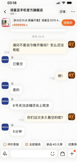 诺基亚3210 4G功能机在首次开售时就引起了极大的关注,短短时间内就被抢购一空。这款手机不仅保留了诺基亚3210的经典