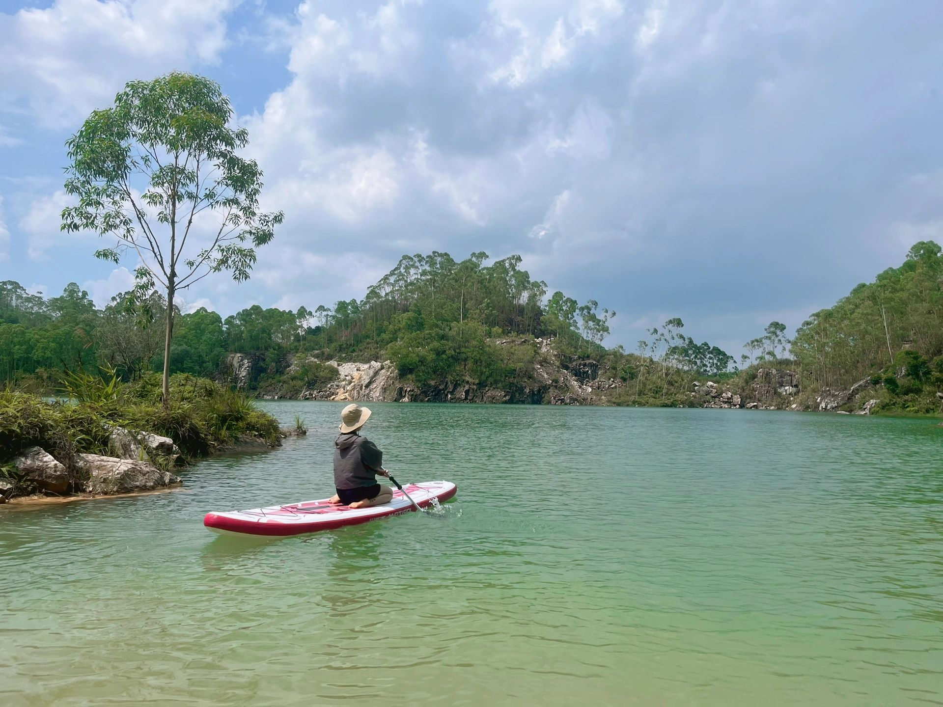 我们把露营设备都准备好全部放在桨板上运到中间的小岛上