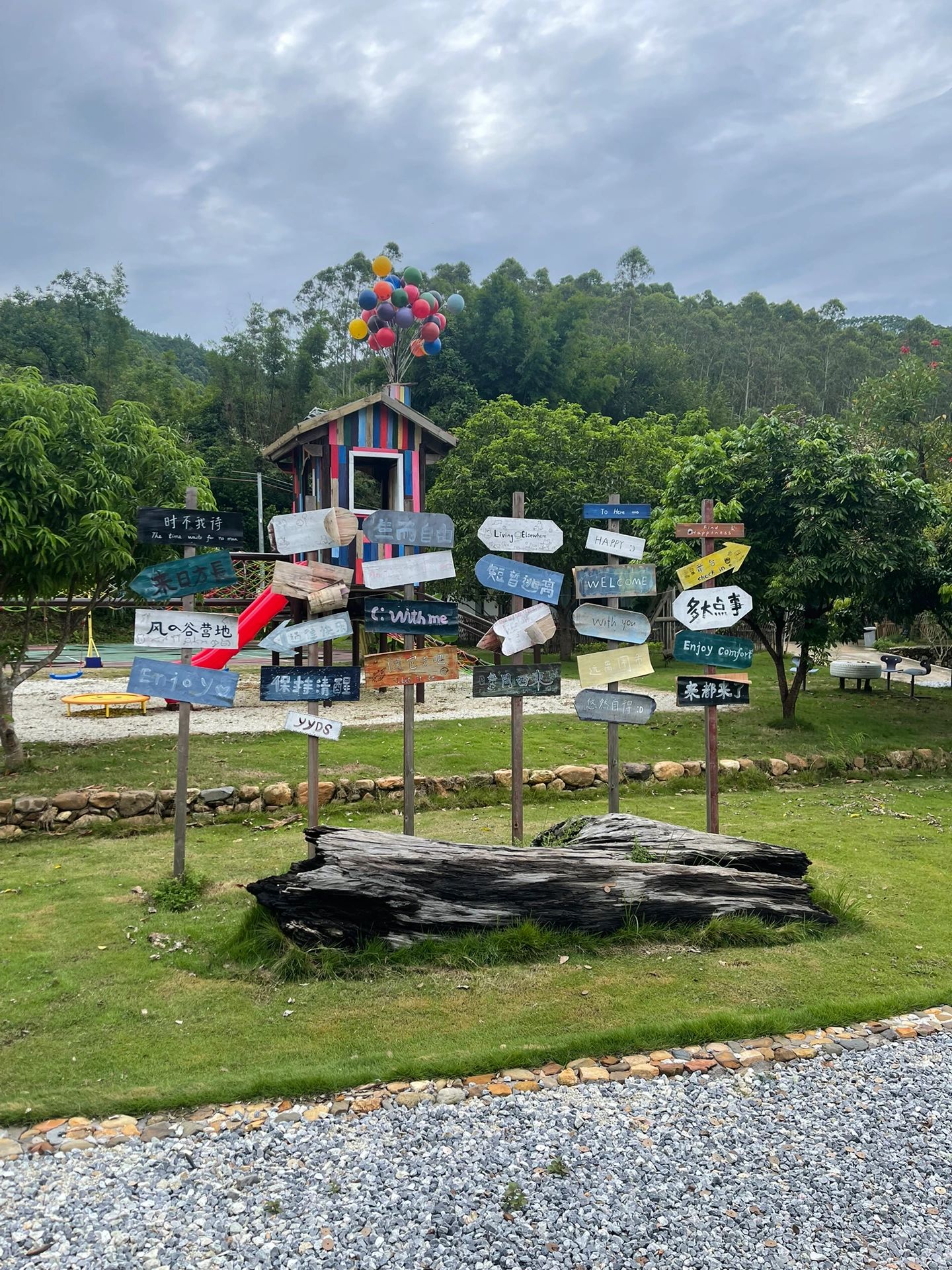广州出发➡️两个小时🕐到达目的地,旅途天气不是很好🌫️有点下雨☔️,整个营地的布局有点像农家乐田园🏕️,适合毛孩们自由奔放.