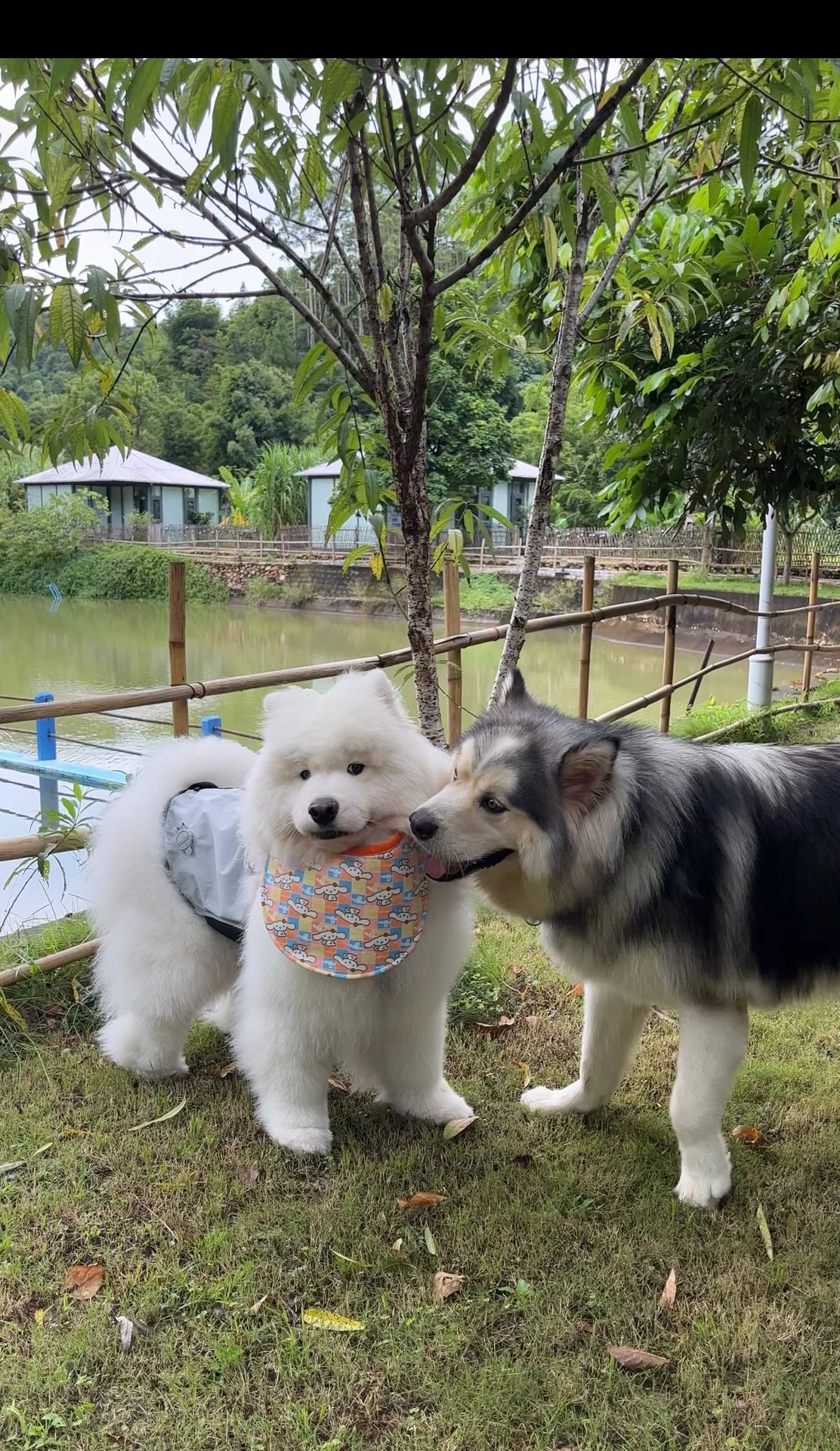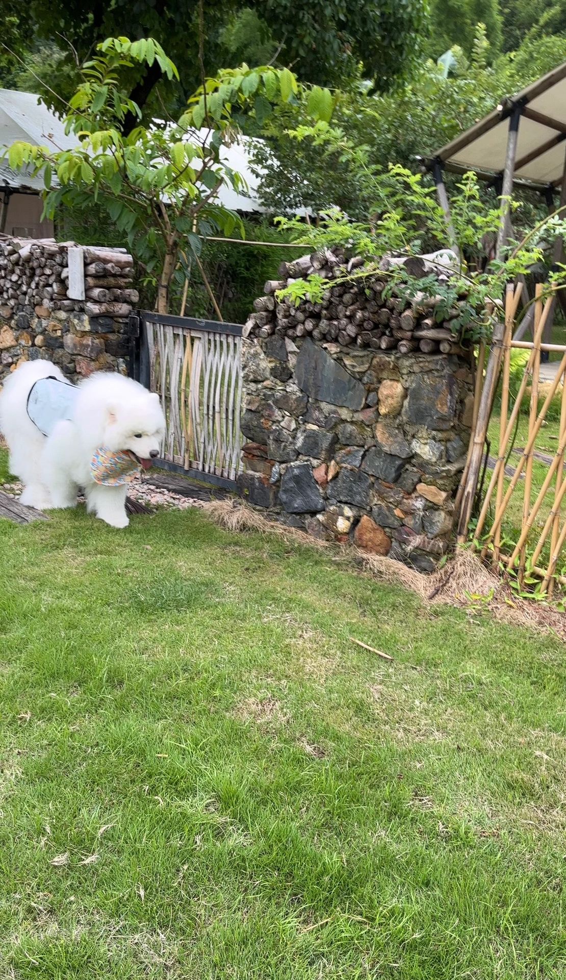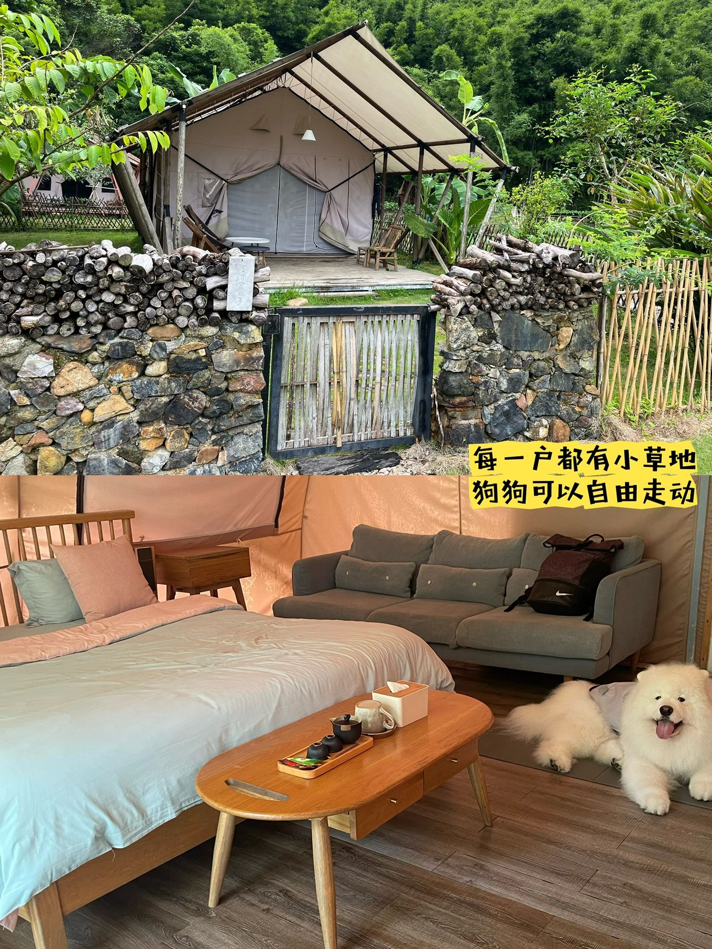 🛖我们入住的是帐篷房 有围拦着的独立院子 毛孩子们在里面玩耍可快乐了 旁边还有小溪