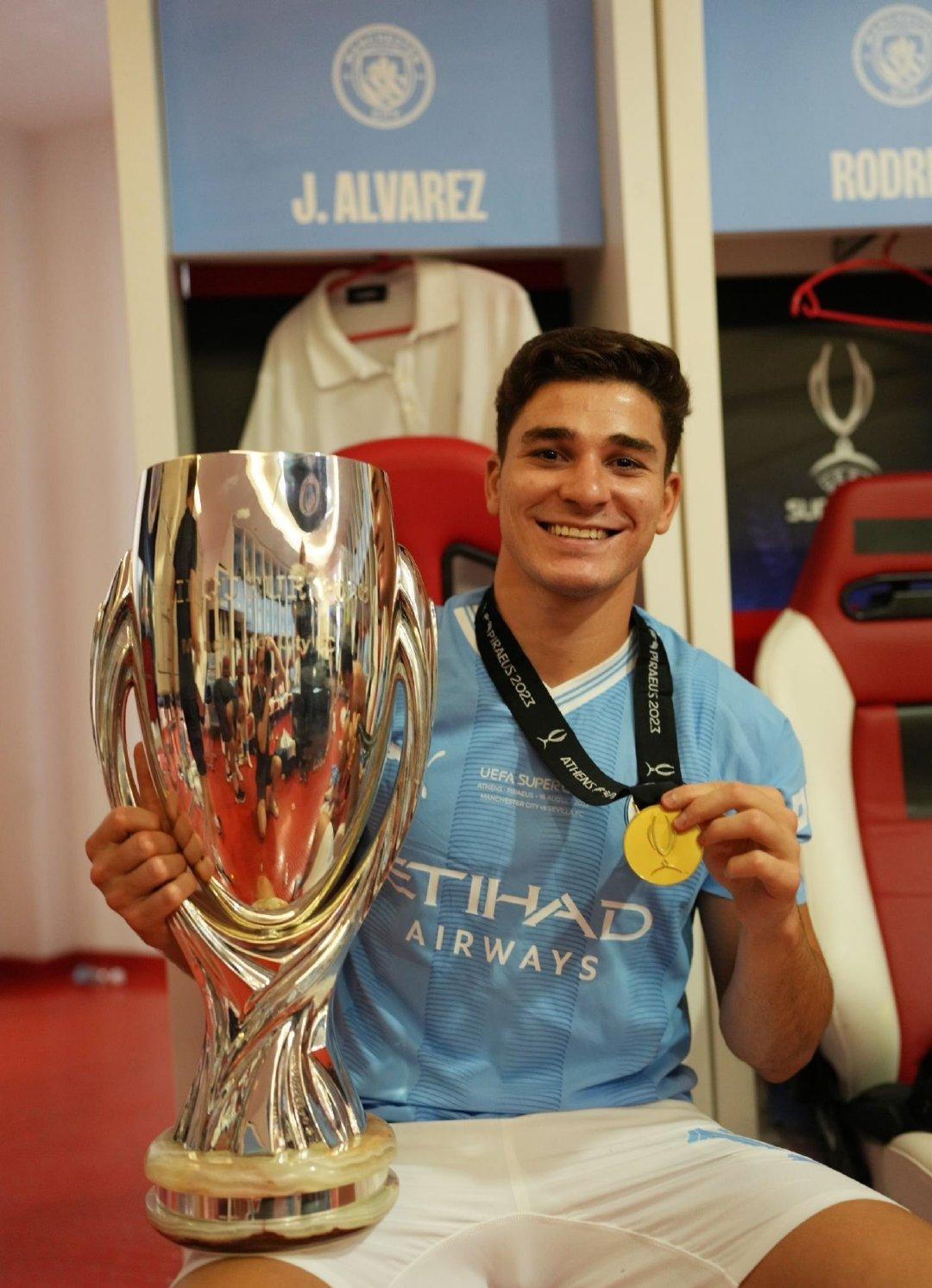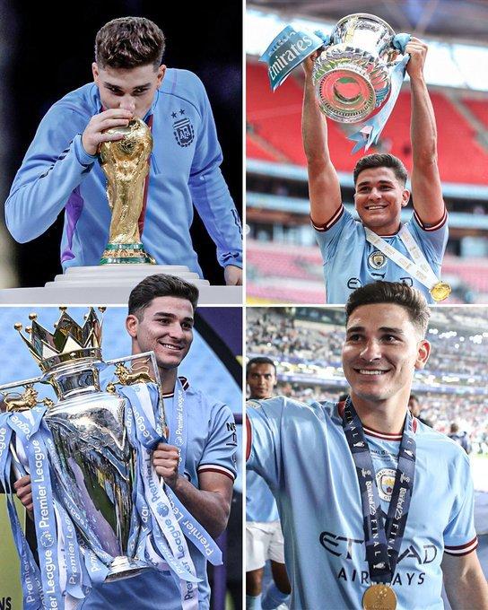 全球最强U23[what],中超不要扯,梅西C罗都追不上,或许是百年难遇的奇才了,下个他真的很难很难找得出来?[捂脸] 阿尔瓦雷斯,23岁的小蜘蛛,坐拥13个冠军奖杯。 数量或许不算多,关键是横跨欧美+全球。 或许未来还会有来自亚洲的奖杯。 [笑哭][笑哭][笑哭] ★世界杯 ★美洲杯 ★欧美杯 ★阿超联赛 ★阿根廷杯 ★解放者杯 ★阿根廷超级杯 ★阿根廷冠军杯 ★南美优胜者杯 ★英超 ★英足总杯 ★欧冠 ★欧洲超级杯 除了13个冠军奖杯,阿尔瓦雷斯还有阿超最佳射手。 可惜啊!在曼城,非绝对主力,躺平赢冠吗? 路还长,机会还有。 世界杯是和梅西获得的,C罗没有。 一个奖杯,难倒英雄汉了。 谁来追他?