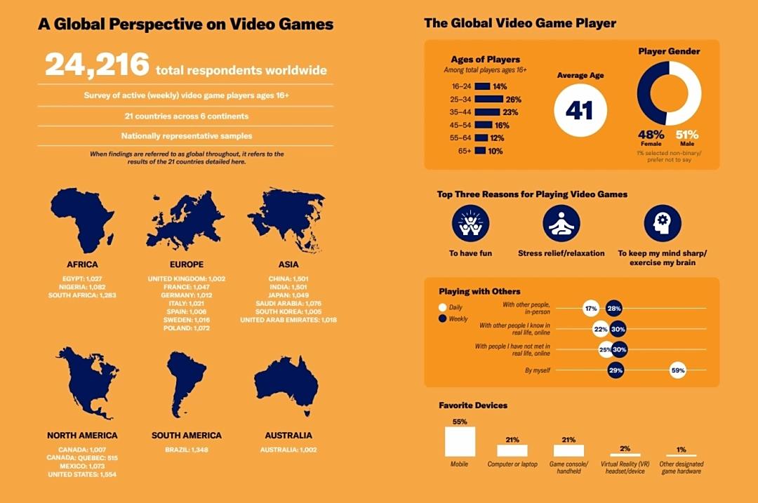 🧩全球游戏玩家平均年龄 41 岁,女性占 48%
