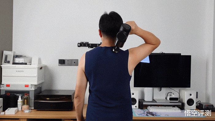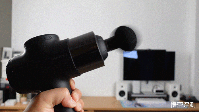 我们通过动图可以看到,未野AGVIEE ProMax筋膜枪哪怕是开到最高档位,按摩头非常稳定,而且手柄可以非常轻松的稳定握持。