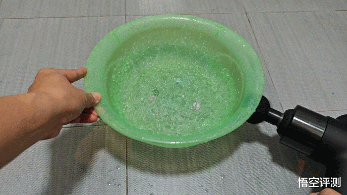 可以看到,使用筋膜枪可以将盆中的水激起来非常高的水花,如果是作用在肌肉,可以深入到每一寸紧绷的肌肉组织,真正实现肌肉的深度放松。