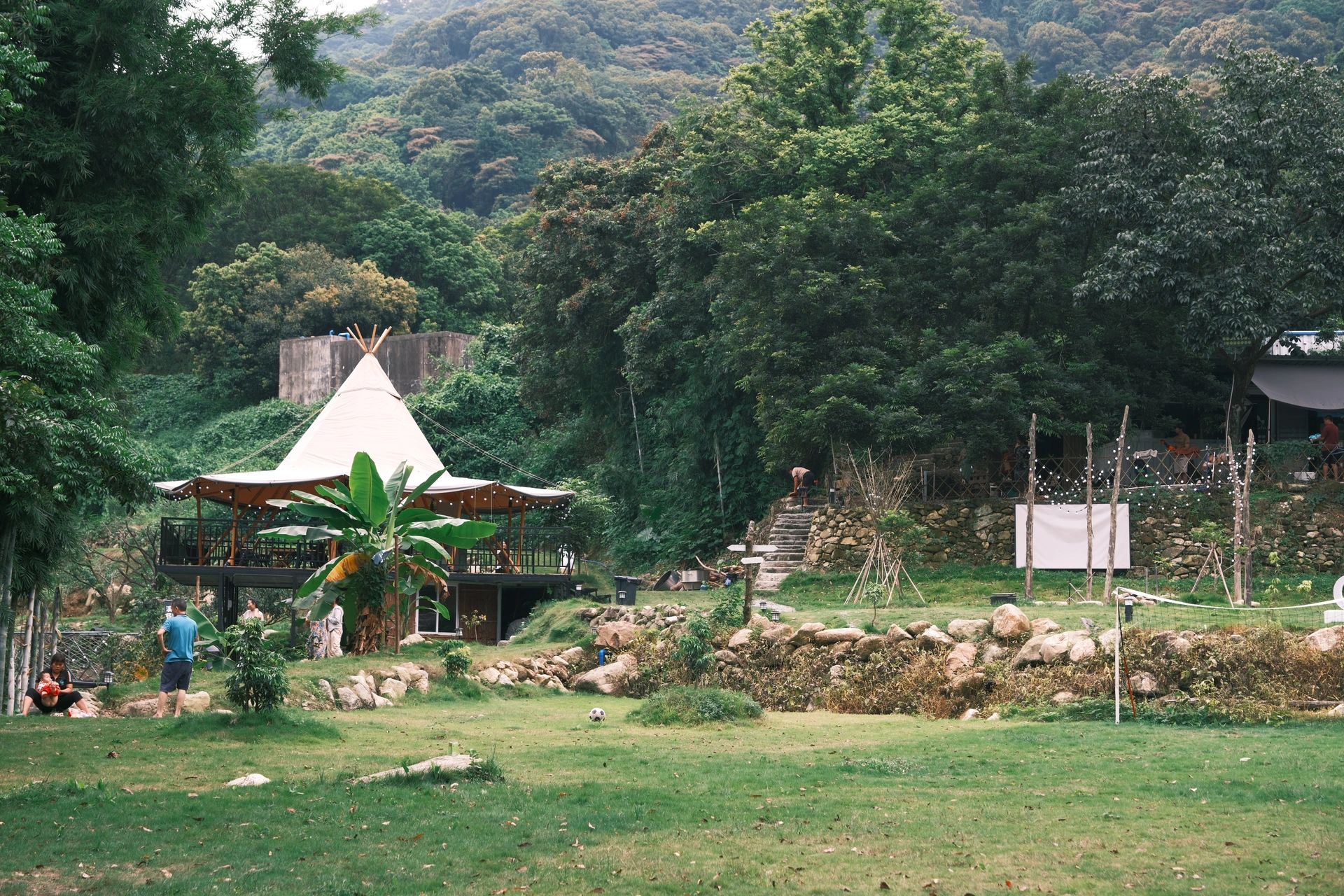 营地有小溪、草坪踢球⚽️、儿童乐园🎠(蹦床)、还有🎬电影、餐吧~设施还是很完善的。