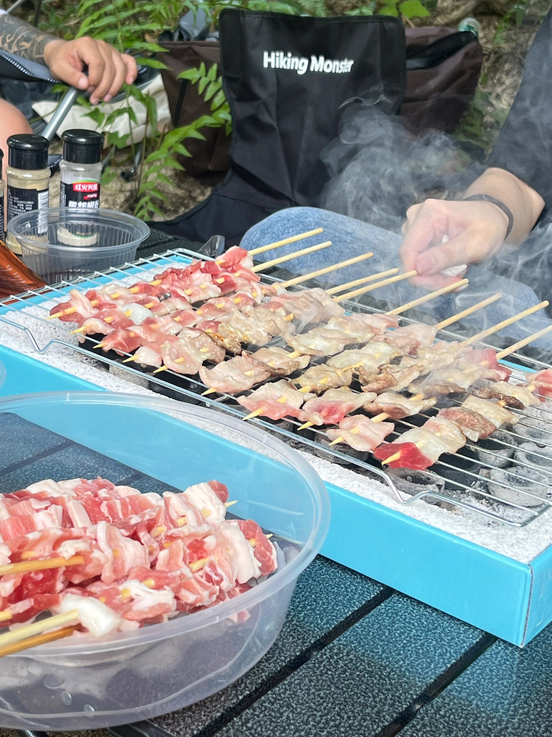 我们带的一次性烧烤炉,然后食材自己准备过去的。一次性烧烤炉很方便,走的时候把碳灭了,清理走。
