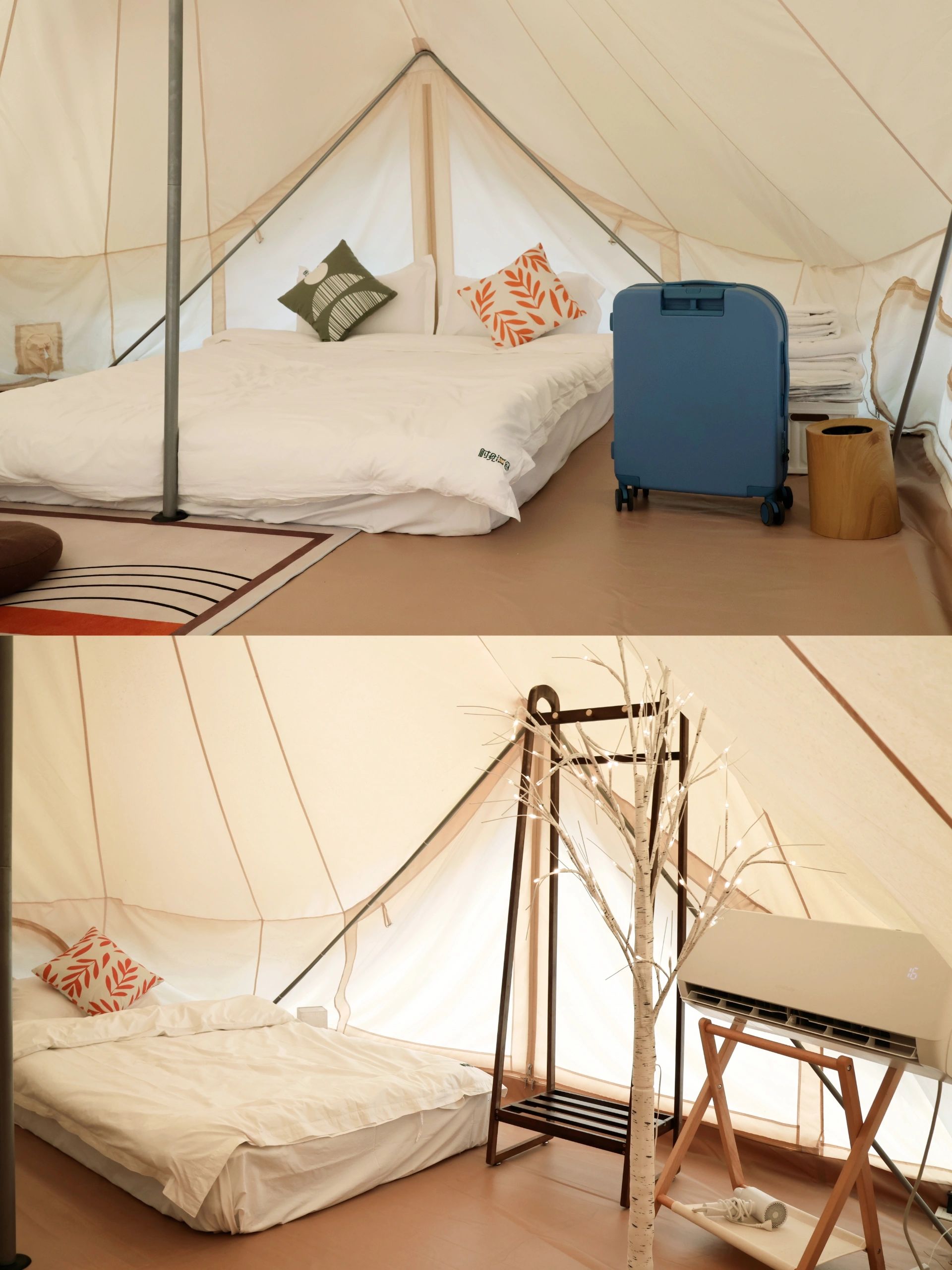 ⛺我们订的是亲子帐篷,一张大床+单人床,空间很大。