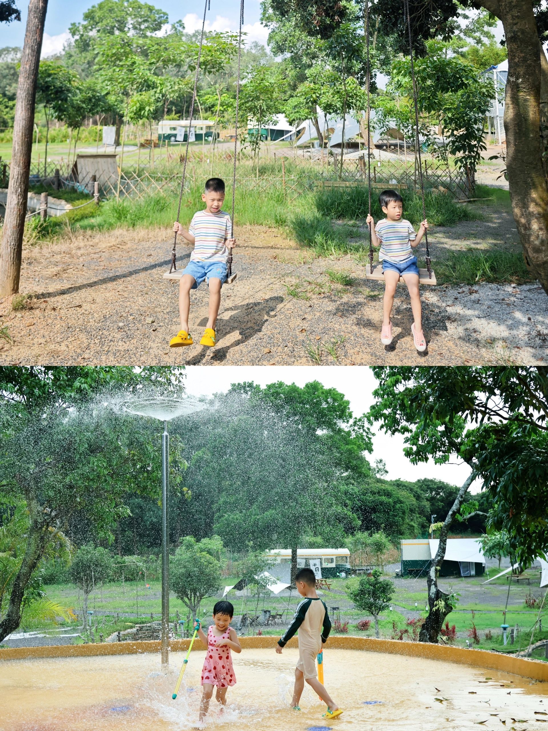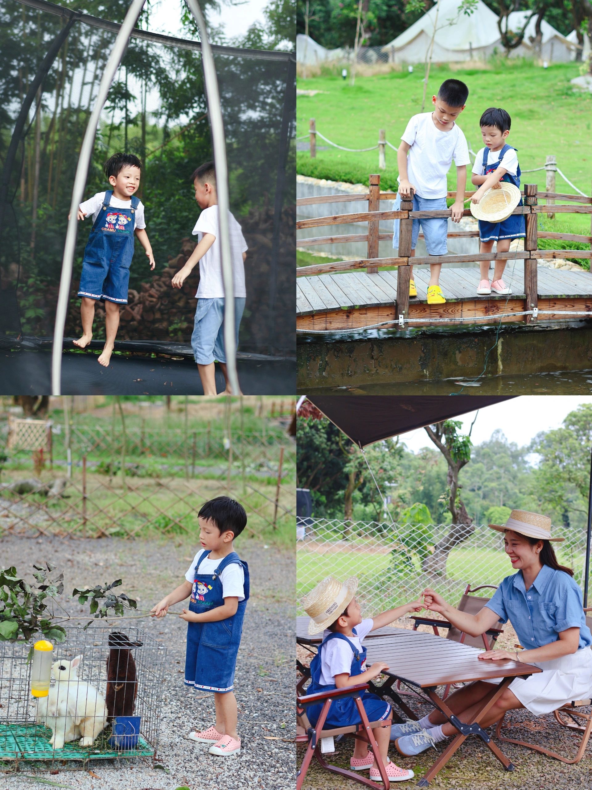 嬉水,溯溪捉鱼🐟,蹦蹦床,滑草,秋千,喂萌宠🐰,草地踢足球⚽、羽毛球🏸等等