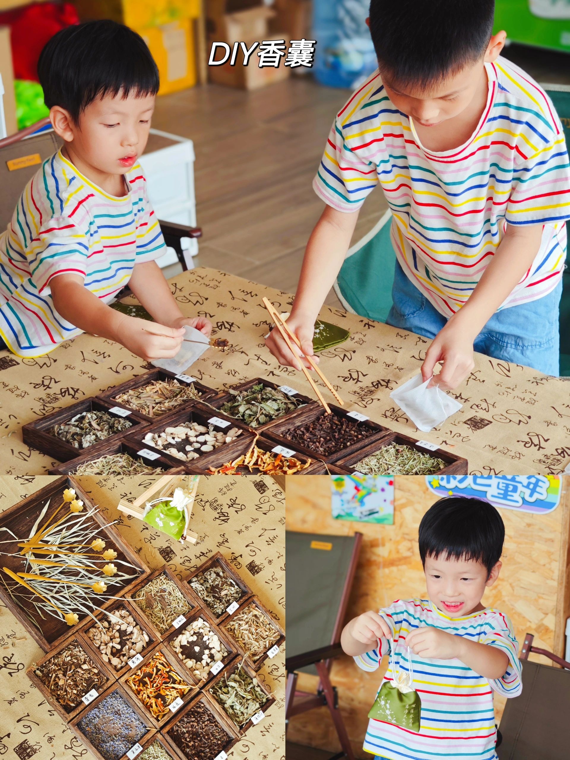 💙除了这些还可以参加营地有趣的亲子活动DIY香囊、DIY扇子,小朋友们都做得很认真,在这里遛娃好充实呢~