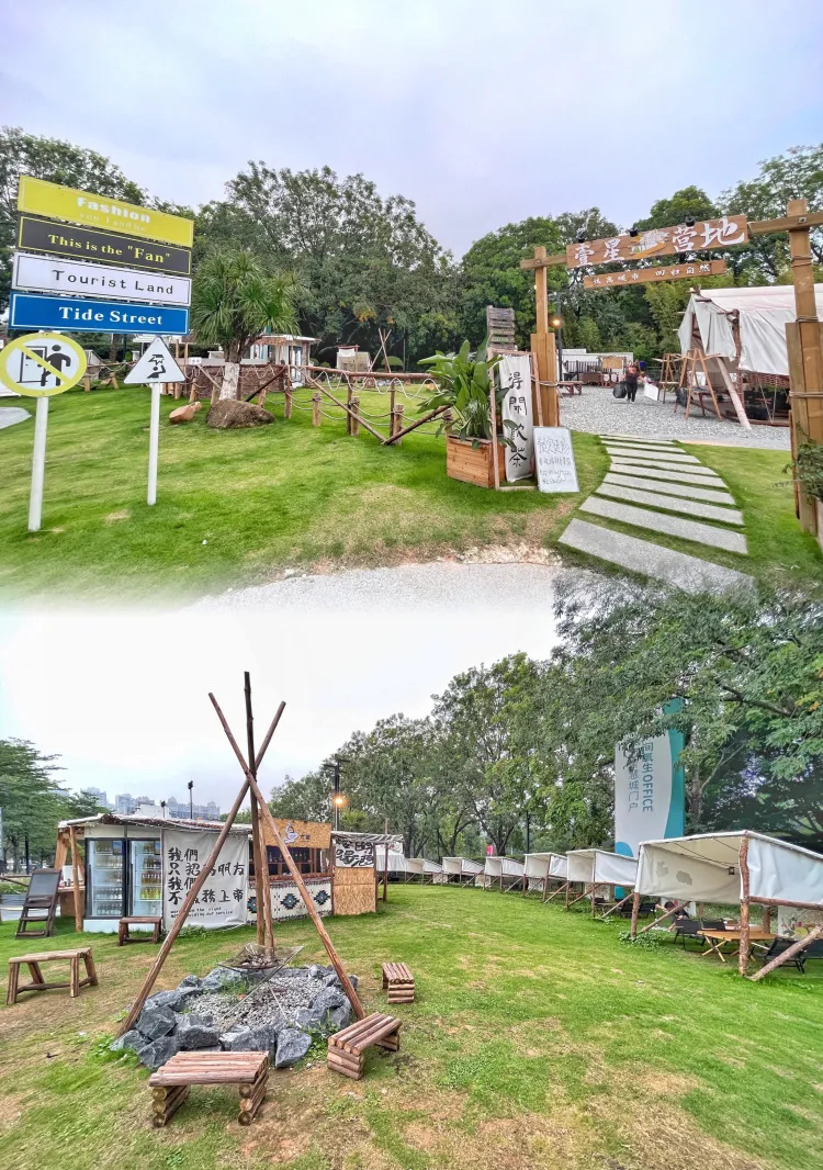到了晚上草坪中间还会升起篝火的,亮起小灯