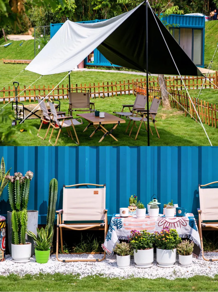 含有天幕、桌椅、围炉煮茶或烤肉、营地设施使用等