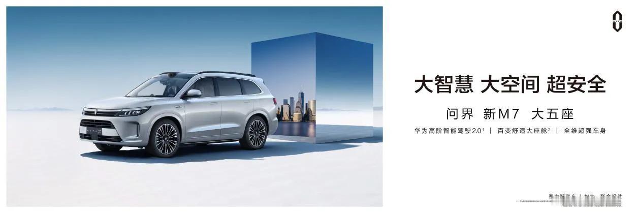 我的梦中情车——问界新M7大五座 超越百万豪车的智能舒适体验才卖25万左右?今天在成都车展,这部车真的堪称我的梦中情车了! 它就是AITO问界新M7大五座,一台五米长的大五座豪华智慧大型电动suv,同级最大的车内有效空间,达到了3320mm的惊人内部空间长度,新增了大床露营模式,分别有三种成床模式:一/二排+后备厢成床的大床模式、一排向后放倒的VIP私人影院模式和一/二排副驾成床的单人床模式。同时,五座版前排座椅均可放平,通过投影仪与幕布,实现随时随地的VIP私人影院,轻松打造舱内双人休憩娱乐空间。 内饰的质感也是相当优秀,配备高档的nappa纹真皮木纹配饰及隐藏式的出风口,极简典雅的高端豪华氛围感十足。超级大的内部空间,我一个一米八五的壮汉无论坐着躺着都无丝毫紧迫感。还配备前后排四个座椅标配通风、加热与按摩功能,相当于标配了四个按摩座椅,前后排双空调箱配置,支持三温区温度独立控制,每个座位都是C位啊! 14处23个储物空间,让空间使用率最大化,这车真的是将智能与实用集为一体的少数存在啊。