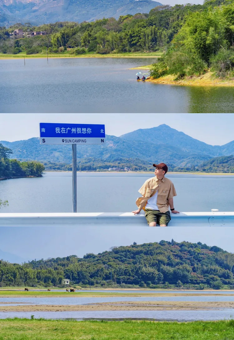 在水库大坝有一段彩虹楼梯,有“我在广州很想你”的路牌,很好拍照。