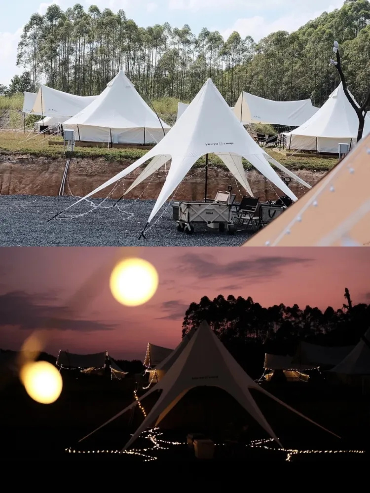 营地有自助营位和帐篷套餐随心pick ,想营地位于南昆山郁郁葱葱的山谷中