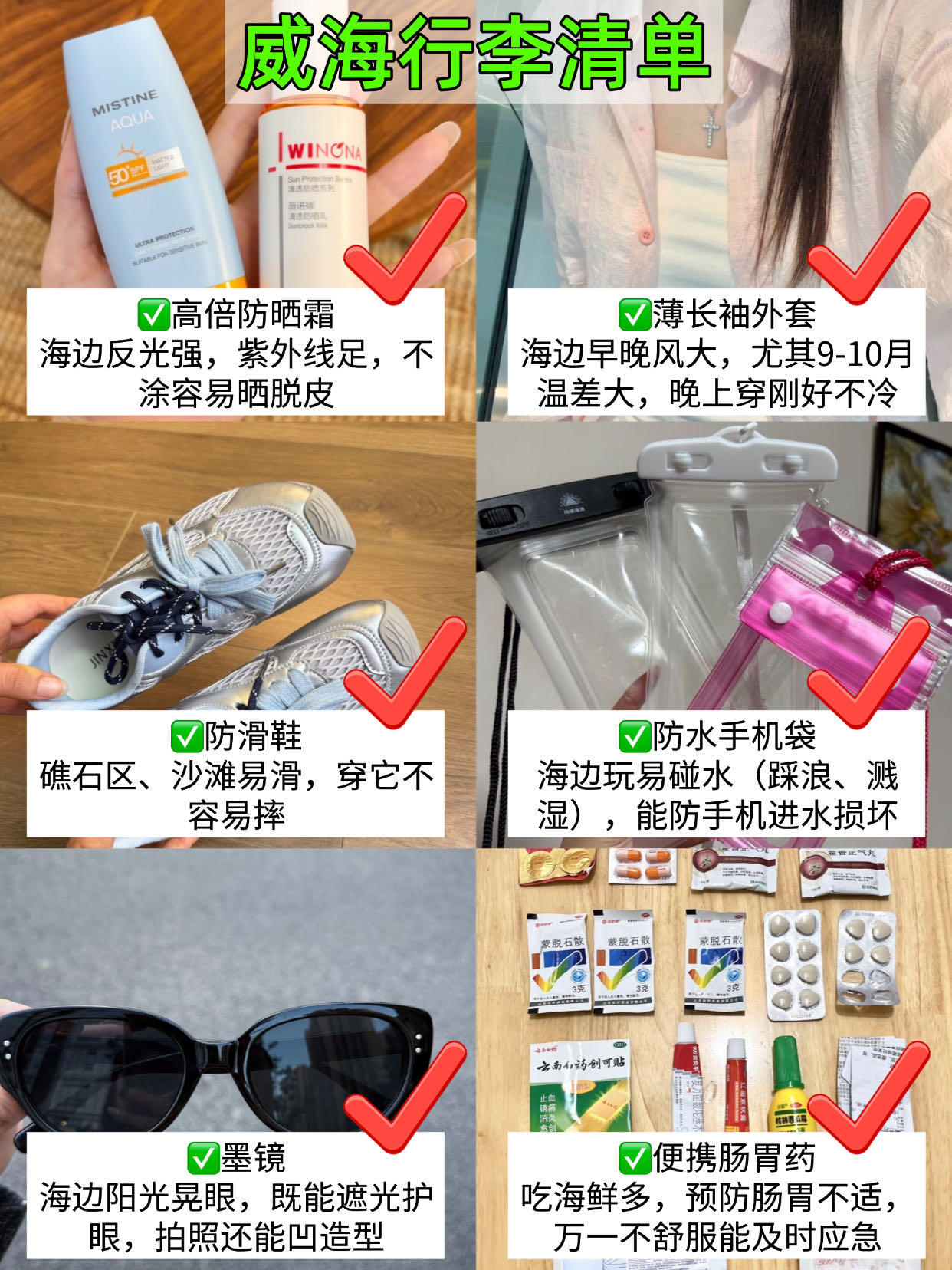 整理了一些自己的出行清单🧾!!需要带物品,真的很有用哦✌打算10-11月去威海旅游的宝子们要记住啦(里面还有景点和行程攻略,大家用的上的~)
