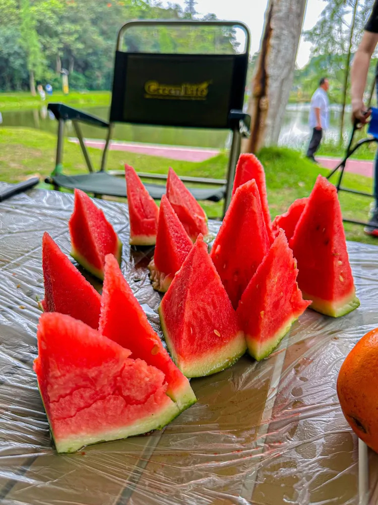 天气热要备多点水,我们这次人多备了一整箱露营灯或者便携打光灯。