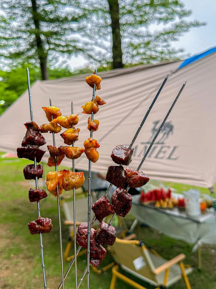在天幕下凉快不少,夏天不能没了它!是装备一整套入的,便宜又省事,适合一家人露营聚会烧烤食材、零食、水果.