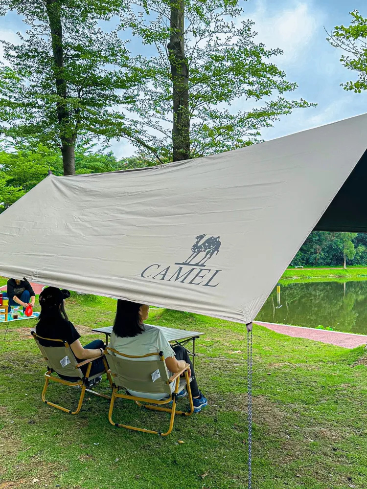 黑胶天幕、蛋卷桌、露营椅、烧烤架