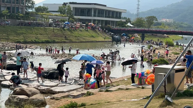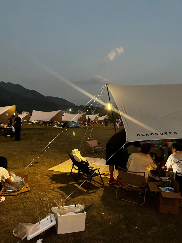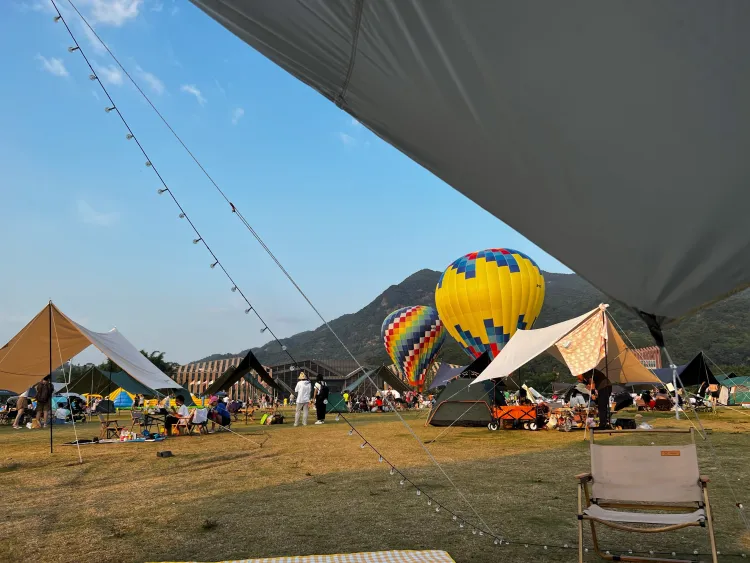 交通: 广州越秀区过去正常情况1.5小时左右。国庆假期去时间就难以估计,必经之路广大高速有多个修路工程。 推荐理由: 营地环境不错,非常宽敞的草坪,帐慕布局合理,不会很挤。 有天慕/桌椅提供。 营地也有各种小吃,饮料摊档。 可预订炉子(合碳》自带食物去就可以。 有热气球,天幕有星星灯,氛围感拉满。 缺点就是,没有地方洗手/洗手间奇缺.. tips : 要带替换的衣服。由于洗手间奇缺,最好带个帐篷换衣服。非常适合亲子活动。 鸭洞河露营地