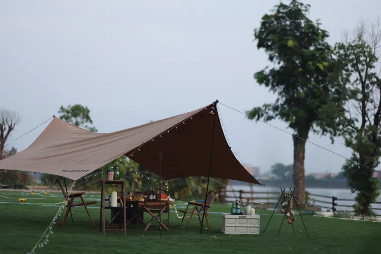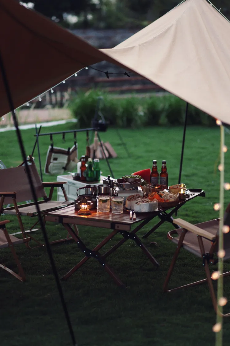 场内必要的露营装备、桌椅、天幕都准备好。