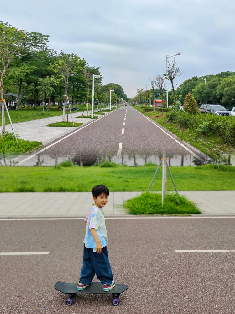 有步道,小朋友可以骑自行车和玩滑板车。