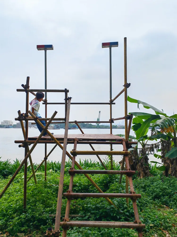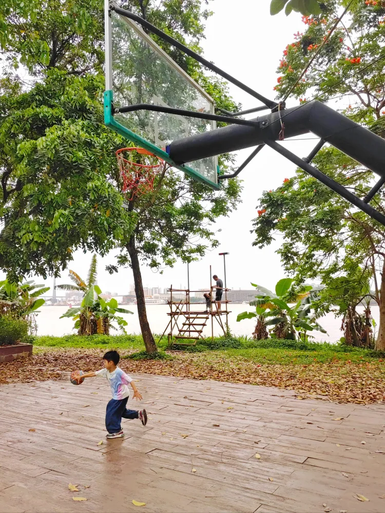 篮球场旁边有一个小平台,可以上去眺望江景哦!