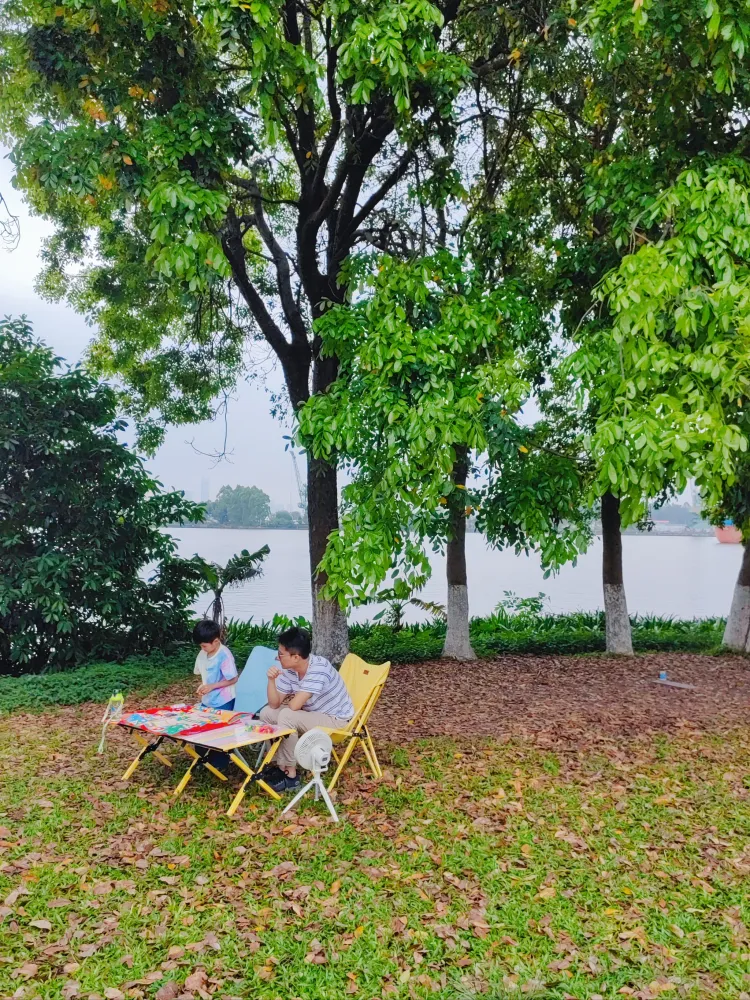 从小洲便桥到大学城湾咀头混地公园之间,沿着江边一路都可以露营。