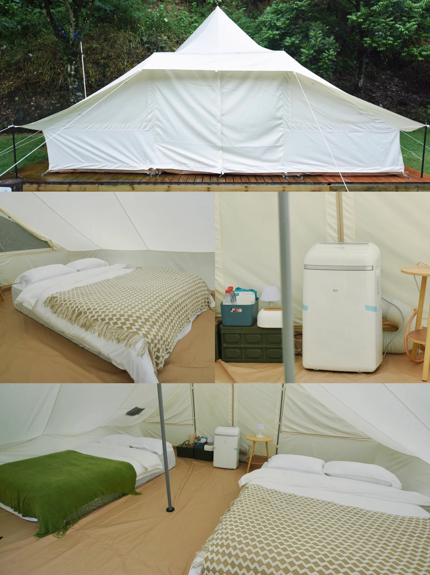 👉🏻帐篷配有舒适床品🛏、冷暖空调、洗漱用品、拖鞋、风筒、WIFI、公共卫浴🚿
