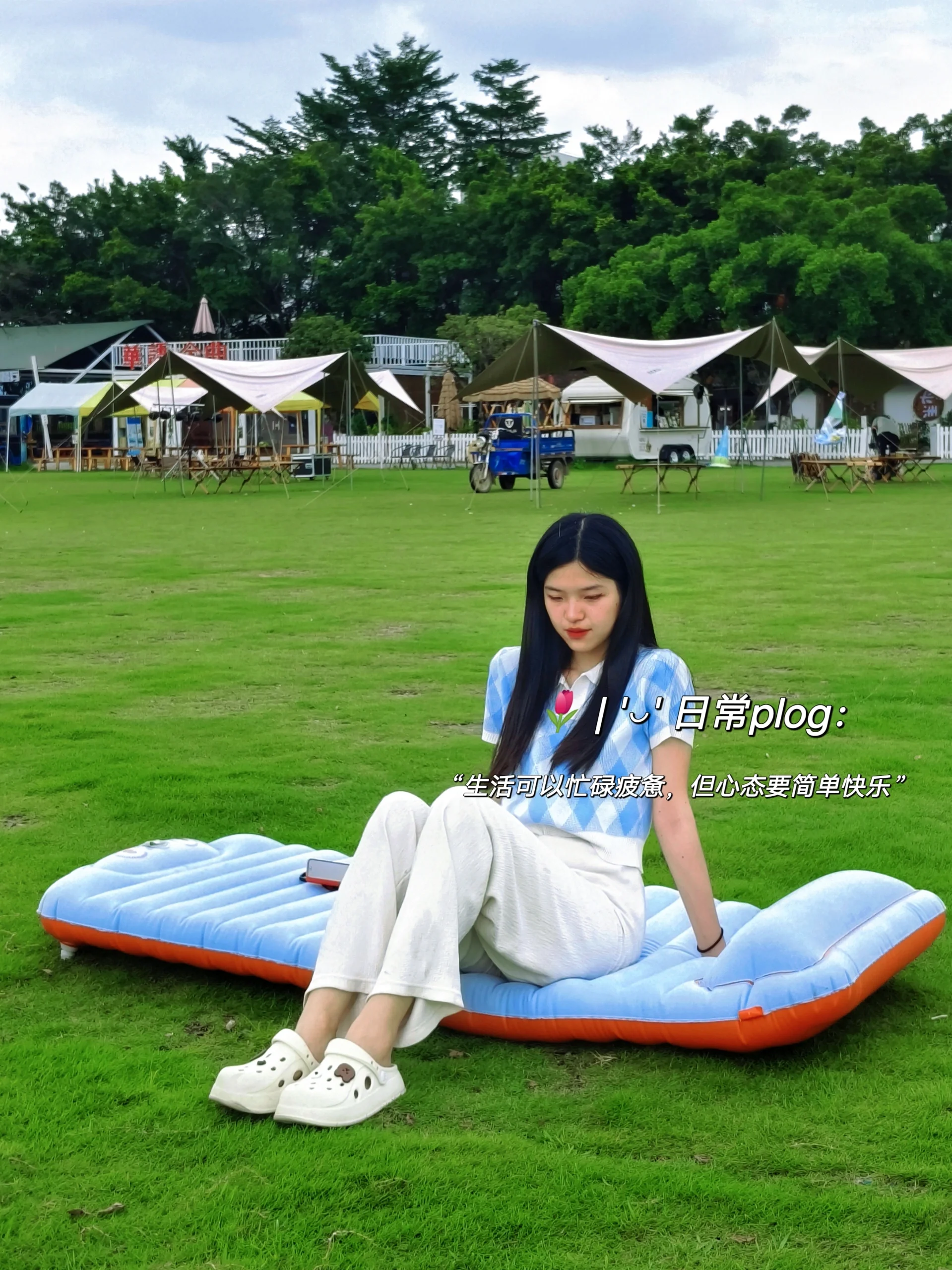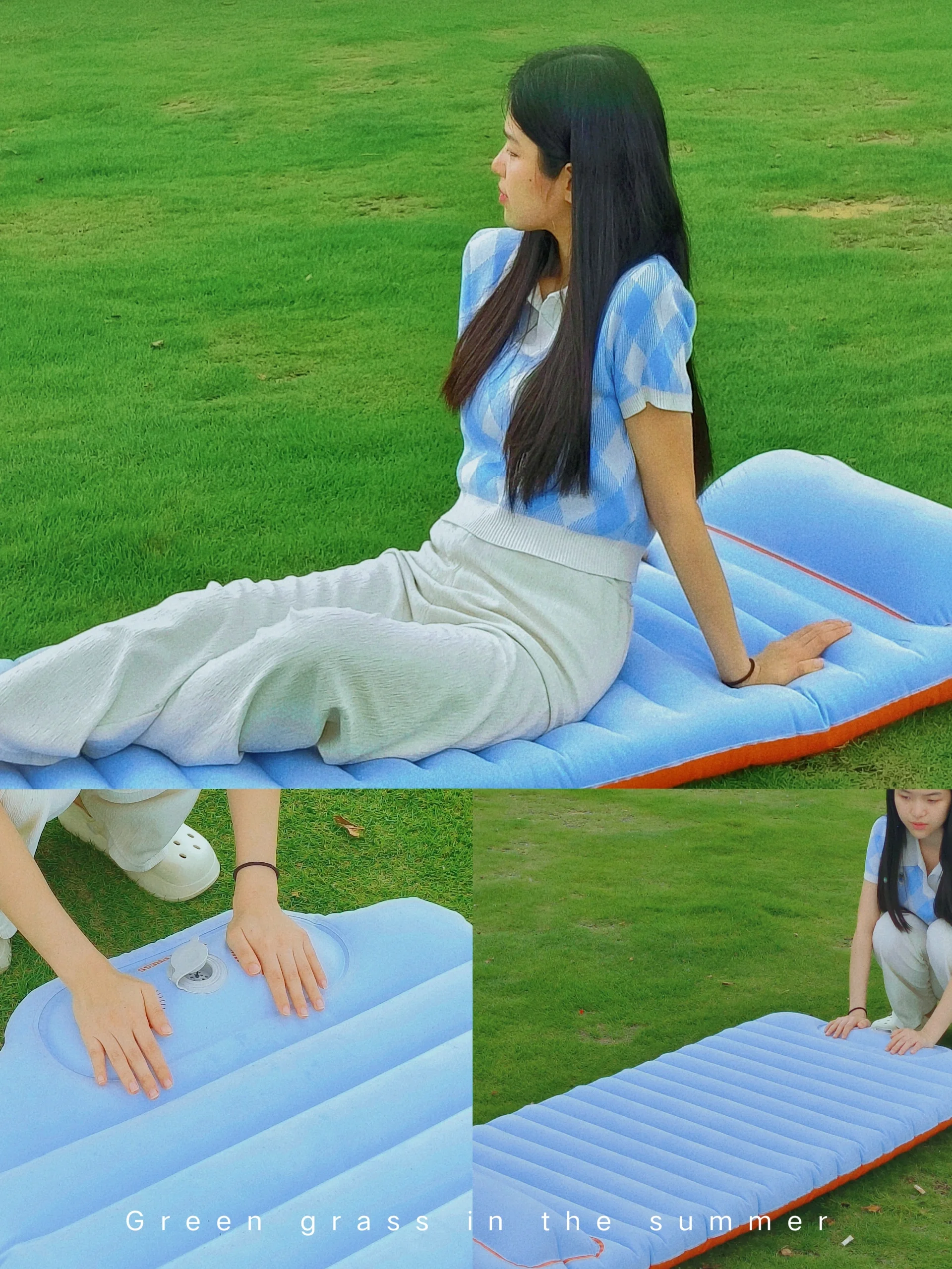 每次去露营我都不忘捎上充气垫,携带很方便,也不占用车内空间,它还自带颈头枕,坐着躺着都很舒服。而且,拍照也好好看📸