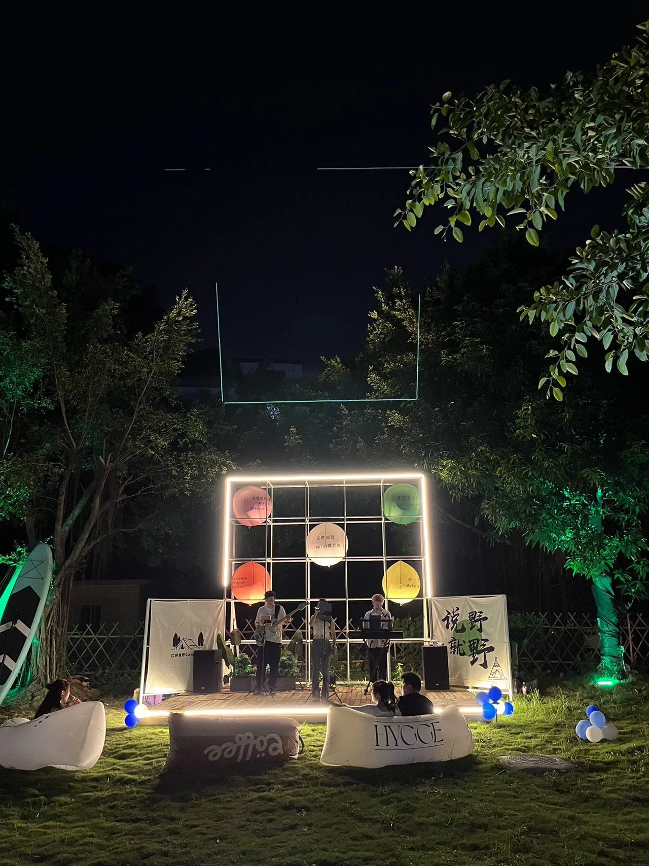赶上了开业,开业仪式直接拉满呀,下午茶、烤肉、音乐会、烟花、江边浆板、彩绘飞盘,还有夜幕降临时