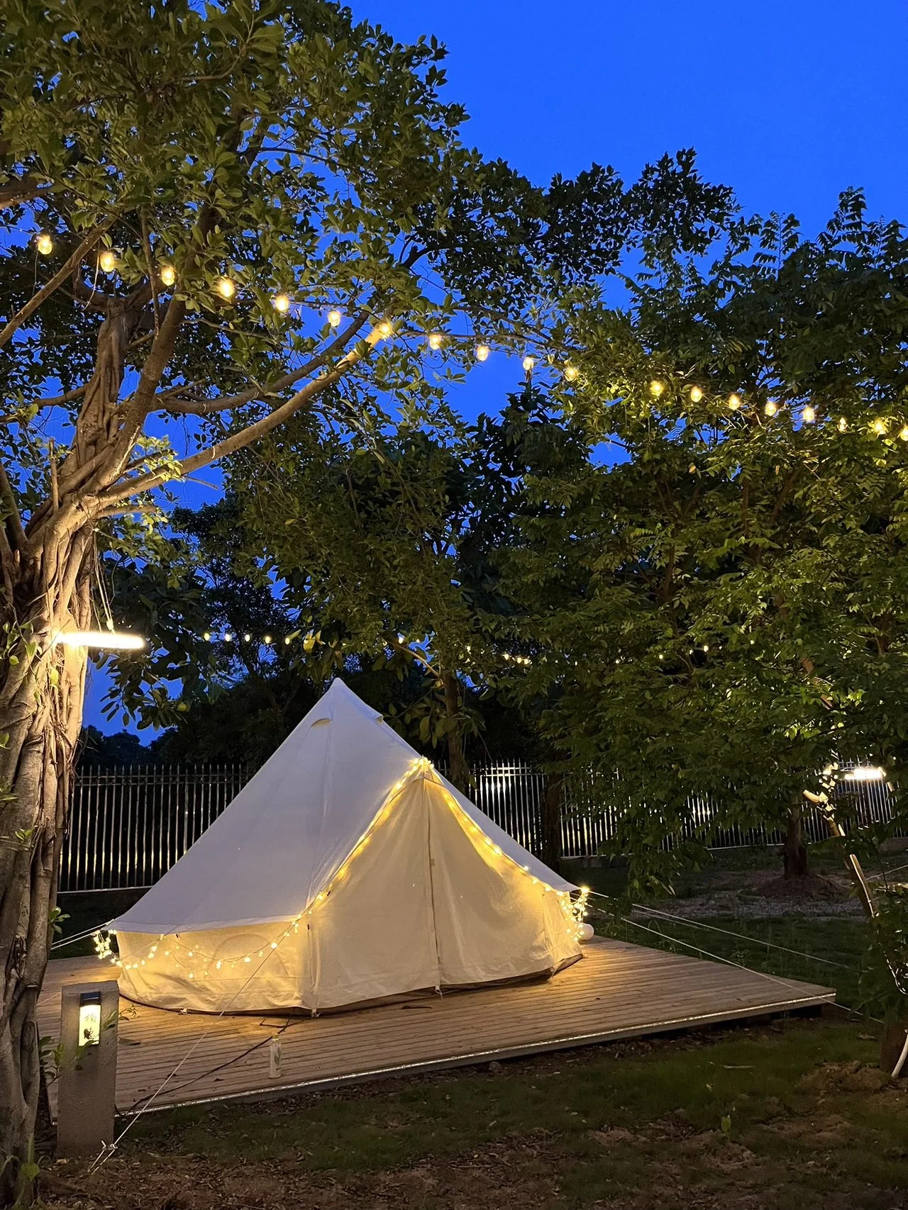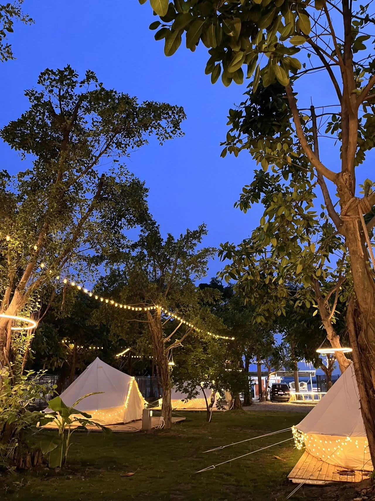 下午在顺德吃了特色双皮奶,出发前往营地,抵达的时候有一点点热,不过靠近江边的天幕区还是很舒服的🐧