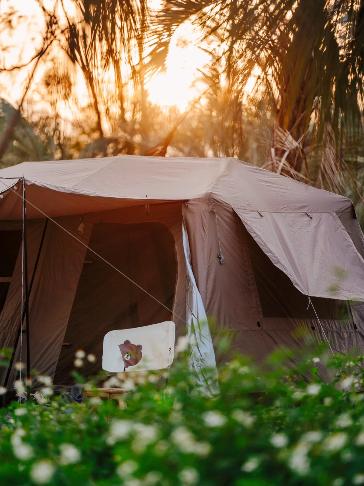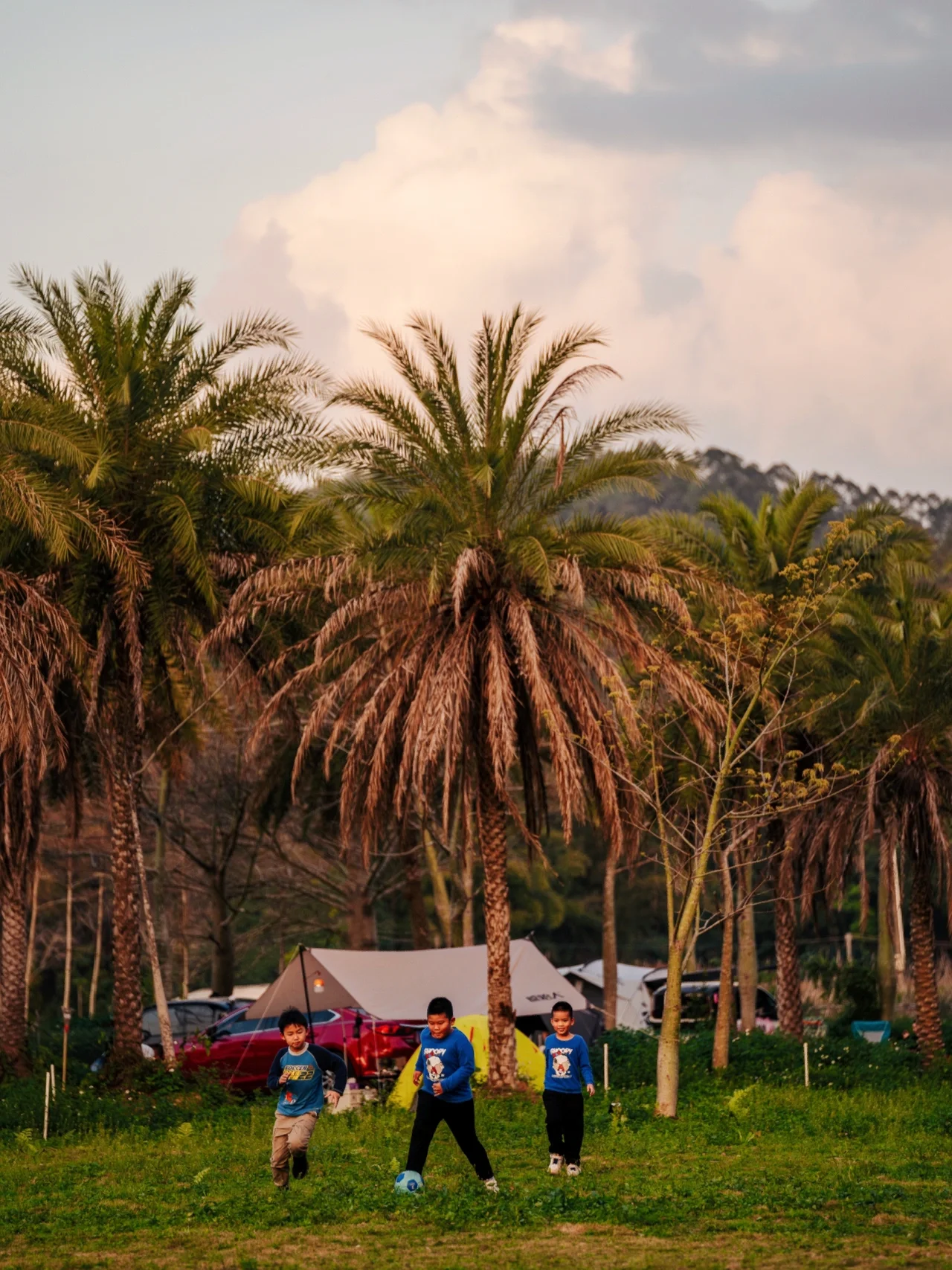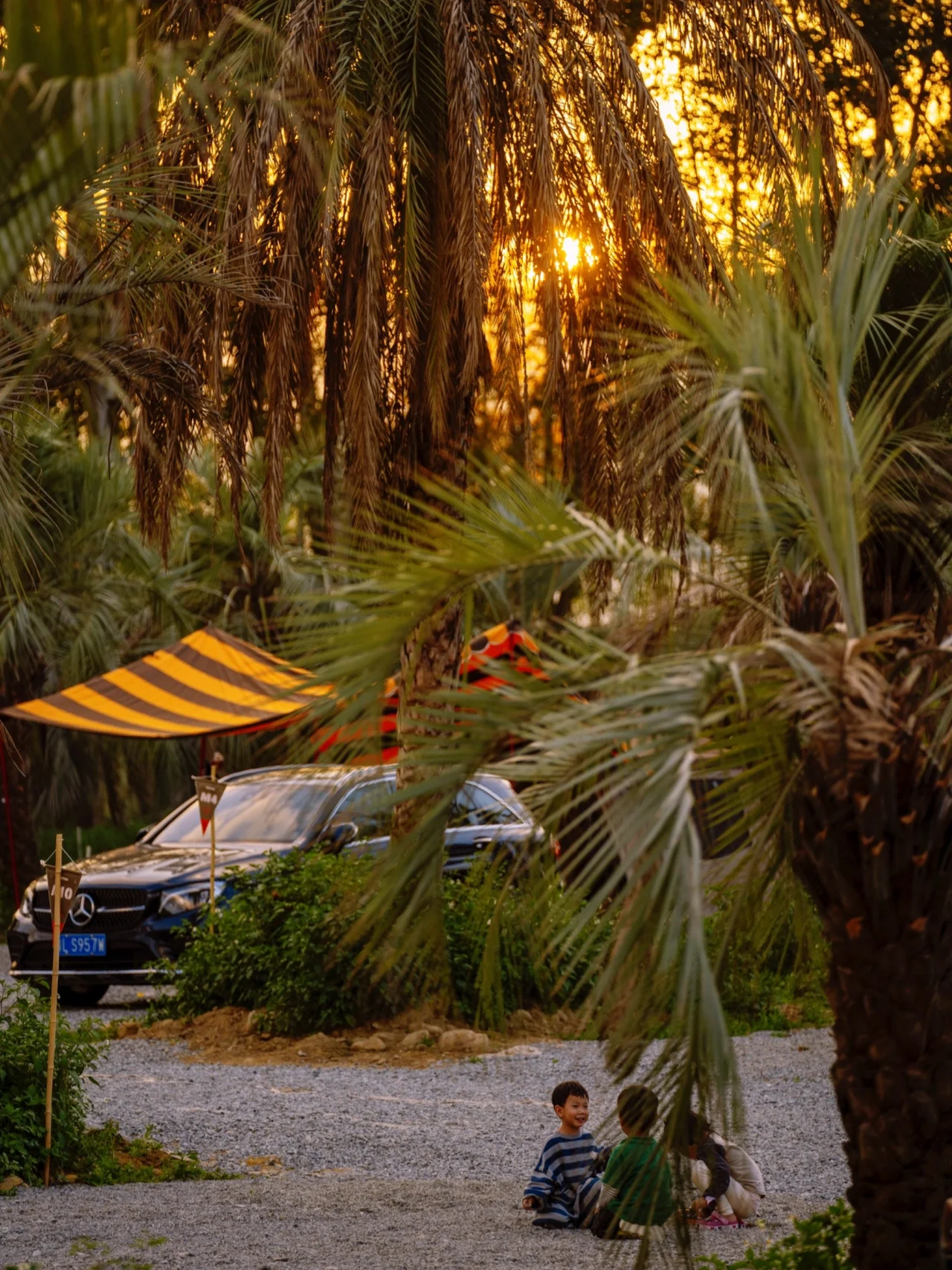 🌴营地种满了海枣树,随手一拍,假装在东南亚露营!⛺️按营位收费,不限车辆,🥳三五好友一起,简直不要太划算了!